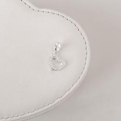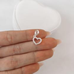Descrição: Berloque pingente coração de lado vazado cravejado 11mm fabricado(a) em prata