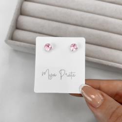 Brinco zircônia redonda rosa 6mm | Mya Prata
