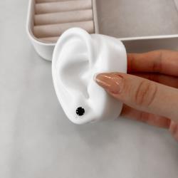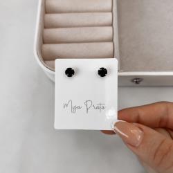 Brinco zircônia redonda ônix 6mm | Mya Prata
