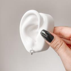 Descrição: Argola click 12mm detalhe coração vazado cravejado fabricado(a) em prata