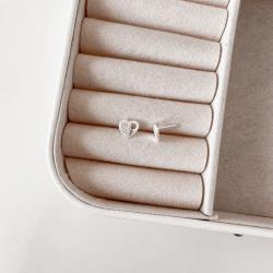 Brinco coração 8mm meio cravejado detalhe coração | Mya Prata