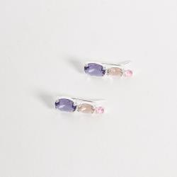 Descrição: Brinco ear cuff pedras ovais e redonda coloridas fabricado(a) em prata