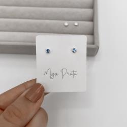 Brinco infantil zircônia 3mm azul tarraxa baby - CI | Mya Prata