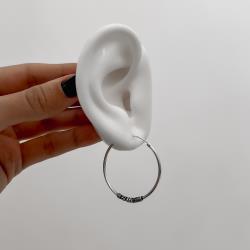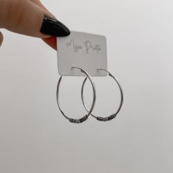 Argola indiana detalhe tribal e molas 35mm envelhecida | Mya Prata