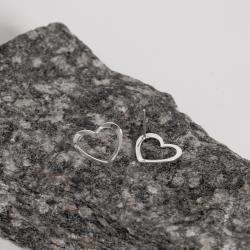 Descrição: Brinco coração de lado vazado 14mm fabricado(a) em prata