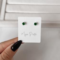 Brinco zircônia redonda esmeralda 5mm | Mya Prata