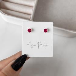Brinco zircônia redonda cereja 5mm | Mya Prata