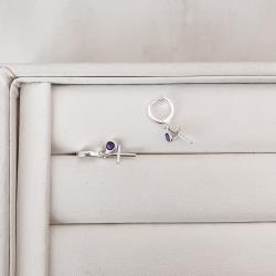 Descrição: Argola click 10mm pingentes cruz e zircônia lilás fabricado(a) em prata