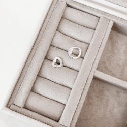 Descrição: Argola click 11mm detalhe coração vazado cravejado fabricado(a) em prata