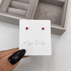 Brinco zircônia redonda cereja 3mm | Mya Prata