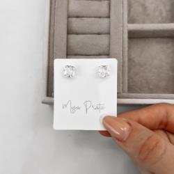 Brinco zircônia quadrada cristal 7mm | Mya Prata