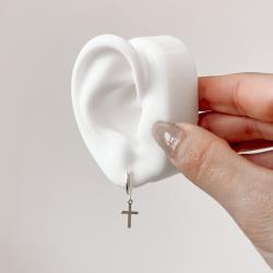 Argola click redonda 12mm pingente cruz | Mya Prata