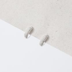 Argola click 11mm cravejada detalhe geométrico | Mya Prata
