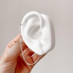 Argola 13mm tarraxa com corrente piercing fake | Mya Prata