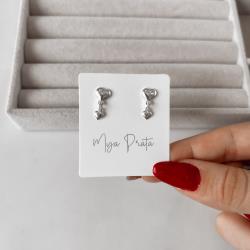 Brinco coração com pingente coração 4mm | Mya Prata
