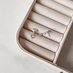 Brinco coração com pingente coração vazado 6mm | Mya Prata