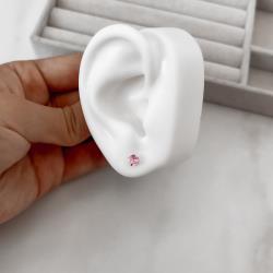 Brinco zircônia redonda rosa 5mm | Mya Prata