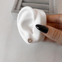 Brinco medalha coração cravejado 9mm | Mya Prata