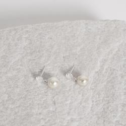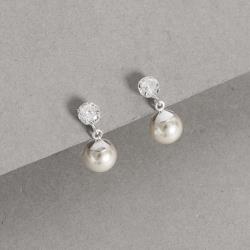 Brinco zircônia cristal 5mm pingente pérola 8mm | Mya Prata