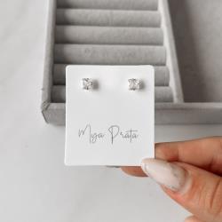 Brinco zircônia quadrada cristal 5mm | Mya Prata
