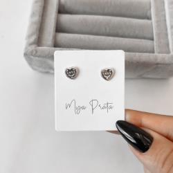 Brinco coração escrito love detalhe zircônias 8mm | Mya Prata