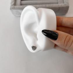 Descrição: Brinco coração escrito love detalhe zircônias 8mm fabricado(a) em prata