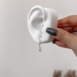 Argola click cravejada 14mm pingente letra E | Mya Prata