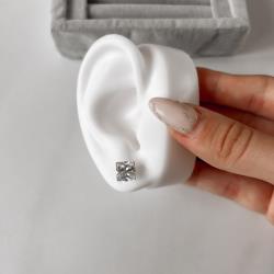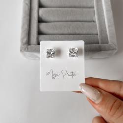 Brinco zircônia quadrada cristal 8mm | Mya Prata