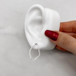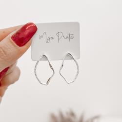 Brinco assimétrico vazado detalhe cravejado 26mm | Mya Prata