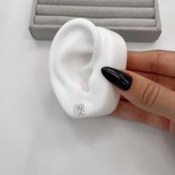Brinco zircônia retangular com cravejado 8mm | Mya Prata