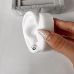 Brinco medalha símbolo da paz 8mm | Mya Prata
