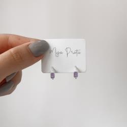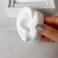 Argola click cravejada 11mm detalhe zircônia retangular lilás | Mya Prata