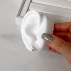 Argola click cravejada 11mm detalhe zircônia redonda rosa