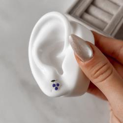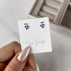 Brinco infantil cacho de uva resina 8mm tarraxa comum | Mya Prata