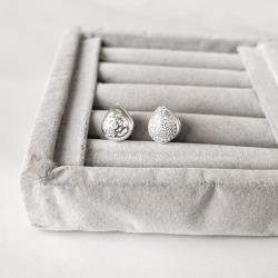 Argola click gota cravejada 14mm detalhe flor vazada | Mya Prata