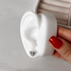 Descrição: Brinco cadeado coração borda cravejada 10mm fabricado(a) em prata