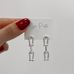 Descrição: Brinco elos com bolinhas 36mm fabricado(a) em prata