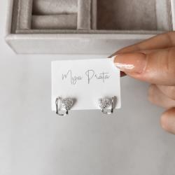 Brinco 2 voltas com coração cravejado 10mm | Mya Prata