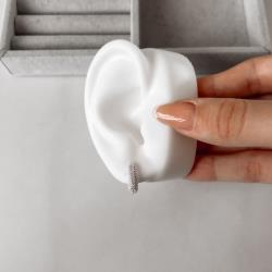 Argola click quadrada com cravejado 13mm | Mya Prata