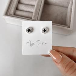 Brinco zircônia redonda ônix com cravejado 9mm | Mya Prata