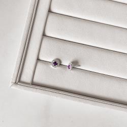 Brinco zircônia redonda ametista com cravejado 9mm | Mya Prata