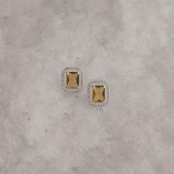 Brinco zircônia retangular amarela com cravejado 13mm | Mya Prata