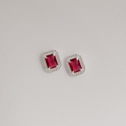 Brinco zircônia retangular cereja com cravejado 13mm