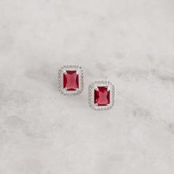 Brinco zircônia retangular cereja com cravejado 13mm | Mya Prata