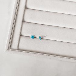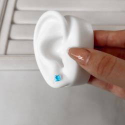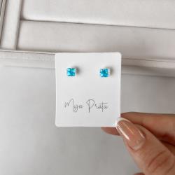 Brinco zircônia quadrada azul 5mm | Mya Prata