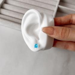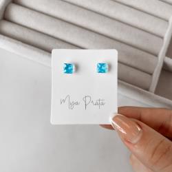 Brinco zircônia quadrada azul 6mm