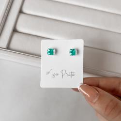 Brinco zircônia quadrada acqua 6mm | Mya Prata