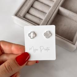 Descrição: Brinco trevo madrepérola cravejado 10mm fabricado(a) em prata