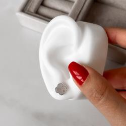 Brinco trevo madrepérola cravejado 10mm | Mya Prata