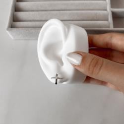 Descrição: Brinco fio liso e cravejado 12mm fabricado(a) em prata